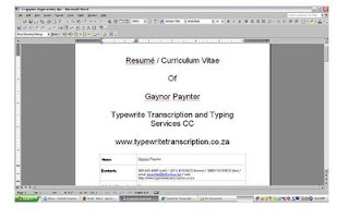 Contact me at gpaynter@telkomsa.net / www.typewritetranscription.co.za to do a great CV or Resumé for you!!